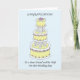 Three tiered pastel colored wedding cake and the words 'Congratulations to a Dear Friend and her Wife on their wedding day'.