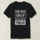 My 11 yo wore adult XL (5’7” 165#). The 8yo is small framed. She wore adult small and tied it in the back. Grandma wore adult large with long sleeve shirt underneath. Tall girl adult medium. Dark haired male adult large. Good quality dark Heather gray, Gildan brand shirt. -it was next up from basic choice and cost about $20 per shirt. Not too thick or thin. Washed and dried well, no major shrinkage. Not see-through. Can wear a bra under it fine. Screen print is just as shown and well done, front and back.