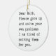 Lightweight, smooth, pure white ornament with nice sheen. Perfect size to be seen from across the room ... and to attract closer inspection! Price was great for ordering enough for the whole family! Clear, bold black design just as requested. Matches the order exactly. Just so nice!
