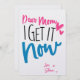 Dear Mom I Get It Now, Custom Mother's Day Card. Cute Funny & UNique card for mom. Personalized Mother's Day Card with Funny Saying , Slogan "Dear Mom, I get it now" letter print design in pink with beautiful hearts pink and blue graphic. Beautiful combination of pink and blue colors.