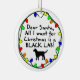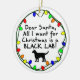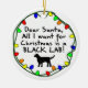 Dear Santa, All I want for Christmas is a Black Lab! Fun holiday dog lover design is ringed in a strand of colorful Xmas lights, and a small drawing of the dog breed by a child. Extremely cute, perfect to include your favorite Labrador Retriever in the holiday season.