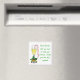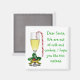 Fun little Christmas magnet, with a note to Santa. A festively decorated wine glass, with gold bow and a sprig of holly, on the stem and a candy cane hanging on the edge, decorates this fun holiday magnet. A cute note to Santa reads, Dear Santa, We are out of milk and cookies, I hope you like this instead. Personalize if you want the text to say something else.