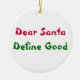 Lightweight, smooth, pure white ornament with nice sheen. Perfect size to be seen from across the room ... and to attract closer inspection! Price was great for ordering enough for the whole family! Clear, bold black design just as requested. Matches the order exactly. Just so nice!