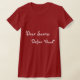 My overall review is that the T-shirt is nice, it fits true to size however the font is significantly smaller than advertised and you can't read it. The printing is unreadable and there is a strain to read it. It does not look like the advertised product. Maybe the shirt color is darker or a larger more visible font should have been used. Photos with and without flash and font is barely legible.
