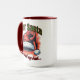 A funny Christmas mug with Santa's hat and Devil's horns.