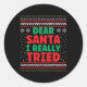 Dear Santa I Really Tried Ugly Classic Round Sticker