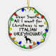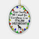 Dear Santa, All I want for Christmas is an Italian Greyhound! Fun holiday dog lover ornaments and other items are ringed in a string of colorful Xmas lights, and a small drawing of the dog breed by a child. Extremely cute, perfect to include your Italian Greyhound in the holiday season.