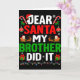 Dear Santa My Brother Did It Funny Christmas Boys Card