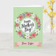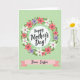 This card features a large white circle in the center with the words “Happy Mother’s Day!” in black lettering, giving the greeting a classic, cared-for look ❤️. Around it sits a leafy wreath in rich green, dotted with simple flowers in soft coral pink, white, and light lavender, each with a small dark center that feels like a gentle wink. The inner edge of the wreath reveals a green-and-white gingham ring, adding a cozy, homey touch like a shared kitchen-table moment. Behind everything, the background is a pale green field sprinkled with small, evenly spaced dots that keep the scene light and airy. Beneath the wreath, a pink ribbon banner stretches across with tapered ends, carrying “Dear Sister” in dark lettering that looks tender and familiar. The overall layout feels like a warm exchange between close family, with the soft colors and neat shapes suggesting an affectionate bond 🌼. The pink ribbon sits just below the wreath, and the dotted light-green background frames the white center like a calm halo.