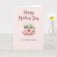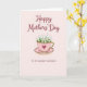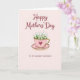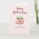 Designed with a soft, pale pink background, this card centers on a rose-tinted teacup resting on a matching saucer, creating a cozy, affectionate scene ❤️. The cup has a shiny gold rim and handle, and a deep crimson heart on the front that hints at a loving bond. From the cup spills a full cluster of tiny white flowers and fresh green leaves, like a small spring bouquet offered with care 🌼. Near the top, the greeting “Happy Mothers’ Day” appears in flowing maroon lettering that stands out gently against the light backdrop. Lower on the design, “TO MY DEAREST MAWMAW” is set in simpler maroon text, giving the message a close, family-focused feel. Soft, even lighting brings out the smooth glaze of the cup, the warm gleam of the gold accents, and the layered petals. The deep red heart sits centered on the teacup, just below the gold rim, with the white blossoms fanning upward above it.