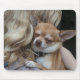 charlie chihuahua enjoys a cuddle with his owner, a sweet blonde girl
