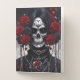 A gray and white death's head with vivid red roses and hearts, and silver chains makes the perfect Goth pocket folder. Heavy metal enthusiasts will love this one!