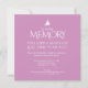 Remember the passing of your loved one with this tribute memorial death anniversary invitation. A peaceful simple flying white dove graphic on the color background of your choice, currently purple-pink. Personalize with your venue, and name of your loved one and rsvp details and your favorite photo on the reverse. Other matching items are available. Designed by www.mylittleeden.com