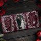 Make a bold statement of eternal love. This gothic wedding invitation features ‘Till Death Do Us Part’ in a coffin-shaped frame, adorned with thorns, roses, and silver accents against a red background with your own QR code. Perfect for a hauntingly romantic celebration! Personalize the text, font, and background color to suit your design preferences. Matching Items in our shop for a complete party theme. Please note that the silver on the invitation is NOT real foil and is printed in flat colors