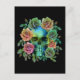 DEATH GREEN SKULL WITH FLOWERS POSTCARD