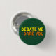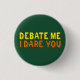 Debate me, I dare you. A confident speech and debate team quote by an opinionated person who can argue their way through any oration discussion or competition. Cool bright yellow and orange text on this orator humor button for a public speaker. Have the confidence that you will win any argument.