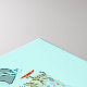 Randomly drawn organic shapes in a palette of blues, yellows and reds over a light cyan background