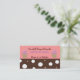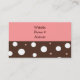 A modern business card in chocolate and white polka dots with a pink background. Perfect card for a baking company, cake decorating business, sweets, desserts, catering, restaurants, etc.