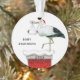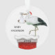 Sweet baby Christmas keepsake gift featuring stork in a Santa hat standing on top of a chimney, about to deliver a baby. To personalize edit text to customize for baby boy or girl's mother-to-be and dad-to-be.