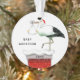 December baby Christmas collectible ornament featuring sweet stork in a Santa hat standing on top of a chimney, about to deliver a baby. Edit text to customize for mother-to-be and dad-to-be.