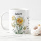 This personalized birth flower mug is a great gift idea for those born in the month of December. Narcissuses are shown on both sides of the mug where a name can be added above the illustration. In the center of the mug script is shown with the text, “The birth flower for the month of December is the narcissus, a symbol of prosperity and hope”. This script may be customized with the text of your choice.