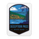 A vintage travel badge design of Deception Pass State Park with Whidbey Island and Fidalgo Island, in Washington State. USA