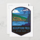 A vintage travel badge design of Deception Pass State Park with Whidbey Island and Fidalgo Island, in Washington State. USA