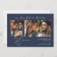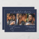 A stylish photo design to invite your guests to save your wedding date with a modern set script for We decided On Forever at the top. The word "and" in between your names is in a decorative set script. The rest of the text can be easily personalised. Easily upload your favorite photos of you both to replace the samples in the template holder. A coordinating navy blue background is also on the back. This can be changed to another color if you wish via the customise further option, as can the white color text.