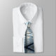 At first glance, the pattern on this tie may look like an angular abstract, but look closer. You'll see an early morning scene out at sea -the sky and ocean seen from deck level, through the railing of a cruise ship.
