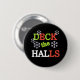 Red, green, and white text with white snowflakes reads "Deck the Halls" on holiday T-shirts, tote bags, mugs, magnets, and more.