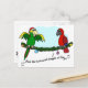 Deck the halls with boughs of Polly! Two cartoon parrots sit on a string of lighted garland, one green and wearing a Santa hat, the other a beautiful red. Christmas ornaments dangle from the strand. Fantastic bird lover gifts, available on a wide selection of products.