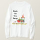 Forget Christmas shopping till you drop, what about all that decorating? It's exhausting too. This t-shirt features a pooped out Santa and his elf who just don't have any more jingle energy. But, the gnome sure does. He's ready to keep on decking. It reads, "Deck Till You Drop" on the front, but you're free to remove it, and go with just the graphics, or change it. And, this design can be purchased on any of the clothing items offered for men or women. Designed by Sheila Cicchi, Brownielocks.com. All Rights Reserved.