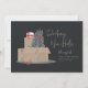 Let your friends and family know that you have a new home for the holidays! These whimsical personally hand drawn 7x5 inch holiday moving announcement cards feature stacked cardboard moving boxes with Christmas tree, lights, ornaments and a gift box with the greeting, “Decking New Halls,” on an black background.
