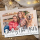 Modern Decking New Halls, hand lettered, single photo holiday card. The photo template is set up for you to add a horizontal photo and you can also add your new address and personalized greeting. Minimal typography design with cool black and white hand lettering which sits as a text overlay at the bottom of your picture. Please browse my store for alternative festive wording and colors on the back (or click "customize further" to change the background color yourself).