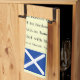 This tea towel for supporters of Scottish independence features the famous words from the Declaration of Arbroath originally written in Latin and signed on April 6th, 1320, at Arbroath Abbey, six years after Robert the Bruce defeated the English at Bannockburn in 1314. It reads 'For as long as but a hundred of us remain alive, never will we on any conditions be brought under English rule. It is in truth not for glory, nor riches, nor honours that we are fighting, but for freedom - for that alone, which no honest man gives up but with life itself.' At the top of the design is an illustration of a single thistle, the national flower of Scotland. Beneath the stirring words of the declaration of Scottish independence is a graphic of the Scottish flag, also known as the Saltire, with the white St Andrews Cross on a dark blue background. The 700th anniversary of the Battle of Bannockburn takes place this year. The referendum on independence for Scotland from the Westminster government is being held on 18th September, when people living and working in Scotland will vote on our country's future as an independent nation.
