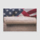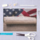 US Declaration of Independence rolled in a scroll bordered by a vintage American flag
