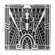 Ceramic tile in a geometric pattern based on Art Deco architectural details - white on a black background