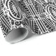 Wrapping paper in a geometric pattern based on Art Deco architectural details - white on a black background
