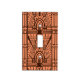 Switch plate in a geometric pattern based on Art Deco architectural details - dark chocolate brown on a copper / rust background