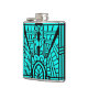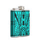 Flask in a geometric pattern based on Art Deco architectural details - black on a turquoise / peacock background