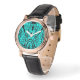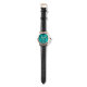 Watch in a geometric pattern based on Art Deco architectural details - black on a turquoise / peacock background