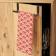 Kitchen towel in a Chinese scallop, or wave pattern, traditional in textile and enamel work, in soft peach, deep rust / brick, cream, and an accent of rust orange