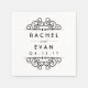 A perfect match for art deco, Gatsby themed or vintage weddings, our chic wedding cocktail napkins feature ornate vintage flourish illustrations framing your names and wedding date in crisp black deco style lettering. Coordinates with our Deco Flourish wedding collection.