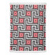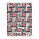 Art Deco Greek key or labyrinth pattern pendant lamp in classic black and white, accented with coral pink