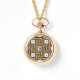 Art Deco Greek key or labyrinth pattern wraparound watch in medium taupe tan and dark chocolate brown, accented with creamy white