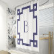 Deco Monogram Initial Navy Blue Greek Key Border Shower Curtain