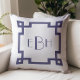 Deco Monogram White Navy Blue Greek Key Border Throw Pillow