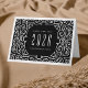Send New Year's wishes to friends, family and clients with our modern deco style folded cards, featuring a rich black background with an ornate white art deco frame. Prominently displayed in tall deco lettering, the year is flanked by your custom greeting (shown with "Happy New Year") and your company name or family name. Add an optional inside message using the field provided. Perfect for business and corporate mailings.