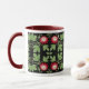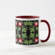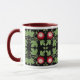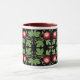 A detailed design featuring red passion flower vines by designer Carolyn McFann on a ringer coffee mug.