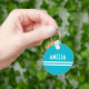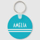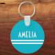 Deco Stripes Name Monogram White Bright Blue Keychain